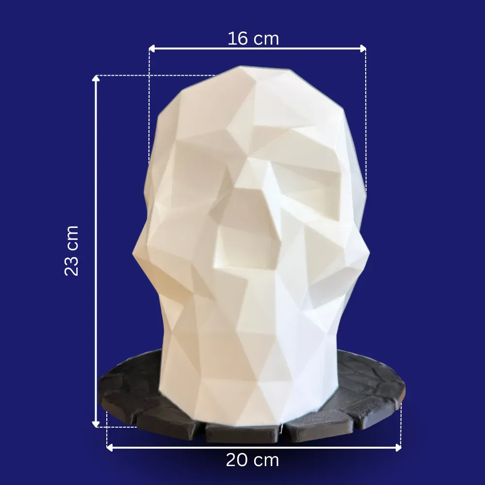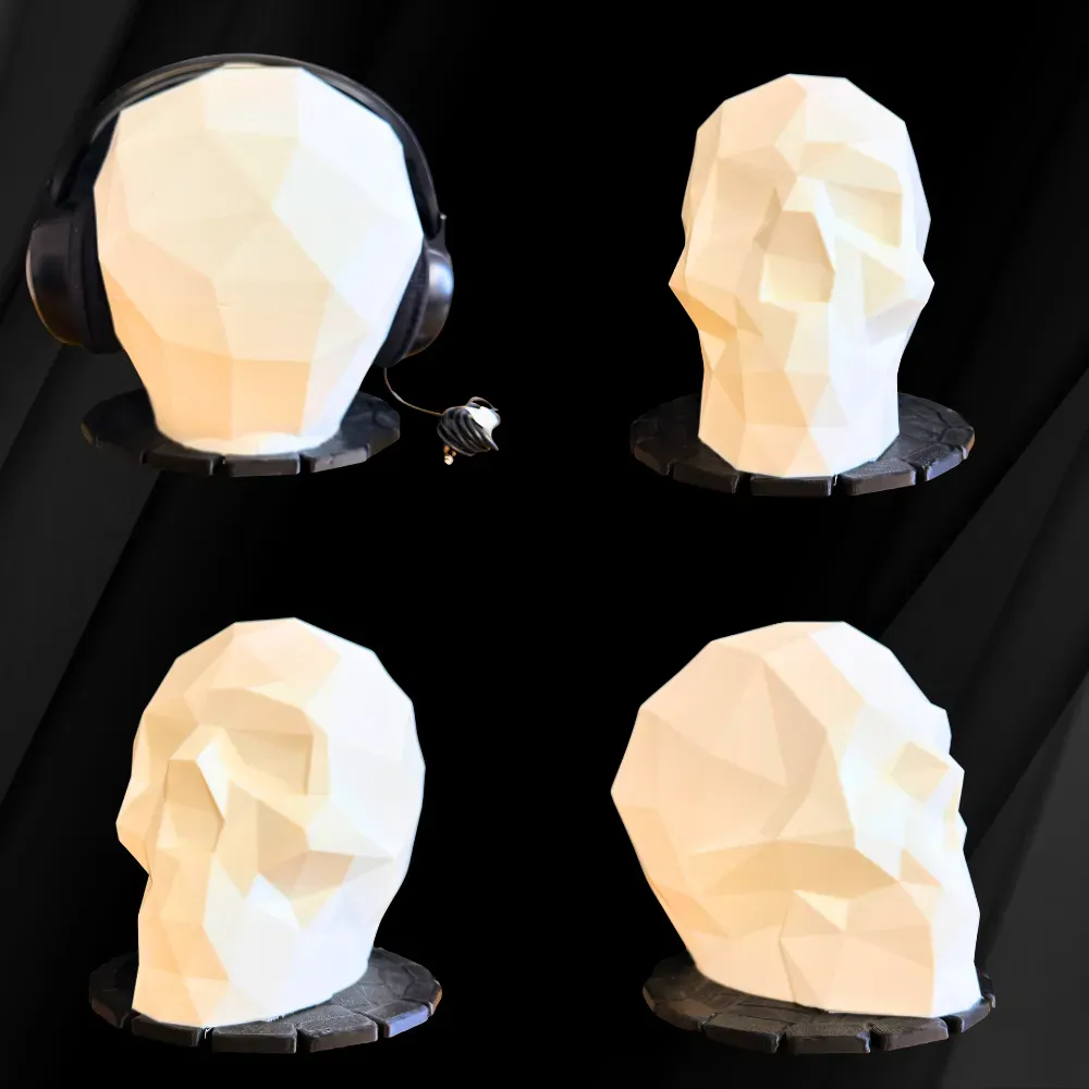 Modelul SKULL se remarca prin liniile sale ferme si suprafetele geometrice care creeaza un efect vizual aparte. Aspectul low poly transforma acest suport casti intr-o piesa decorativa originala, perfecta pentru cei care apreciaza accesoriile diferite, cu personalitate.
